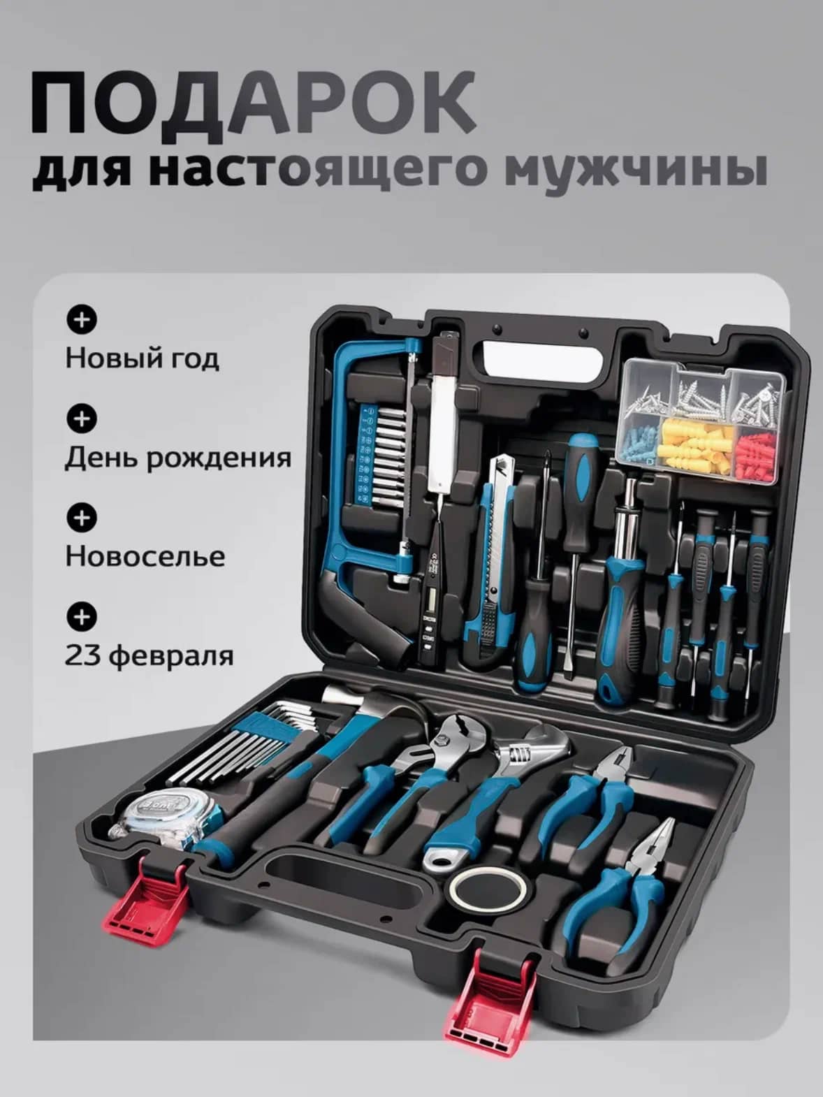 Прочный и стильный кейс не только надежно хранит все компоненты, но и делает набор удобным для транспортировки. Берите его с собой на дачу, в гараж или в поездку – ваш надежный помощник всегда будет под рукой! Подарите универсальный набор инструментов – подарите уверенность в своих силах и возможность воплотить любые идеи в жизнь!